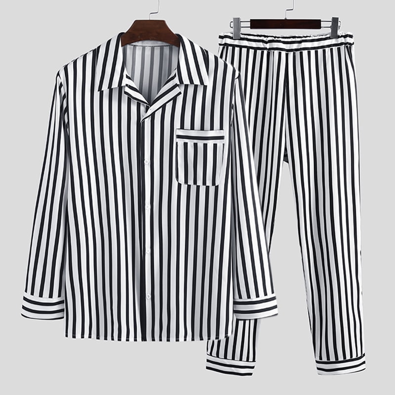 Mens Couples Silk Satin Long Sleeve Nightwear Striped Pajamas Sets Walmart Com